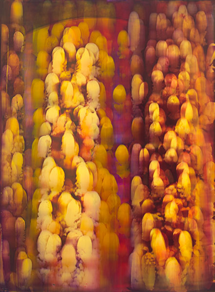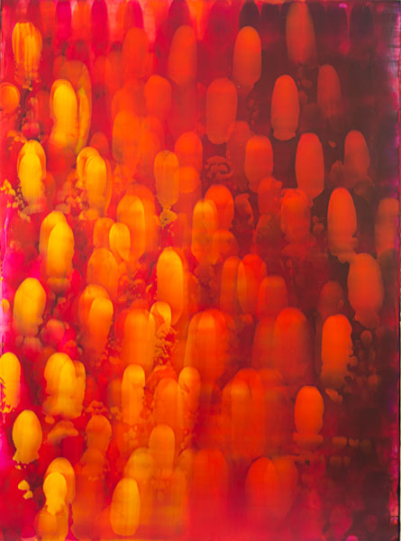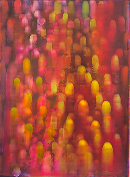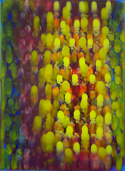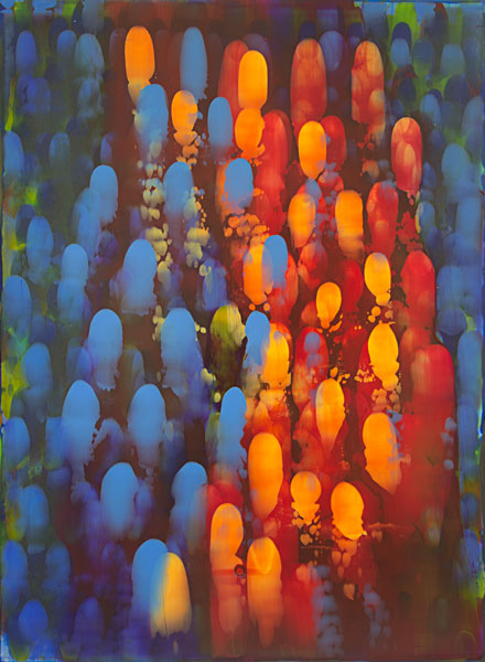 | I guess I paint the way one might play a game of chess. Based on the existing situation on the canvas, I make a move when I choose a new colour and apply it with the squeegee. Then I wait for it to dry usually a day, before I photograph it and evaluate what is on the canvas - seeking always to see what is there, not what I think is there. | ||||