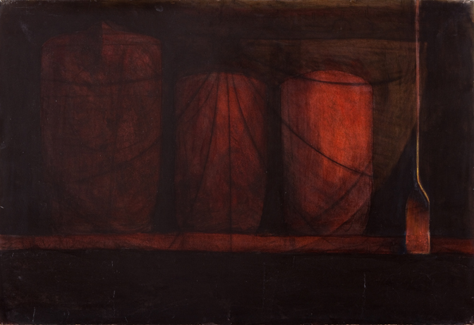 Synthetic polymer, charcoal, shellac on Arches. 1.12 x 0.77m