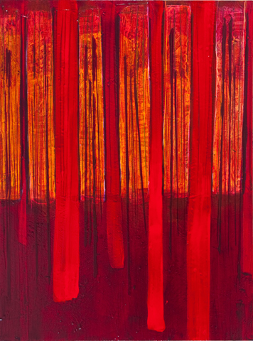 Paintings are generally sized 1 x 1.4 metres, acrylic paint on canvas.