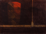 These 11 works are charcoal, pastel and paint, on a paper surface layered with glazes of tinted shellac. |